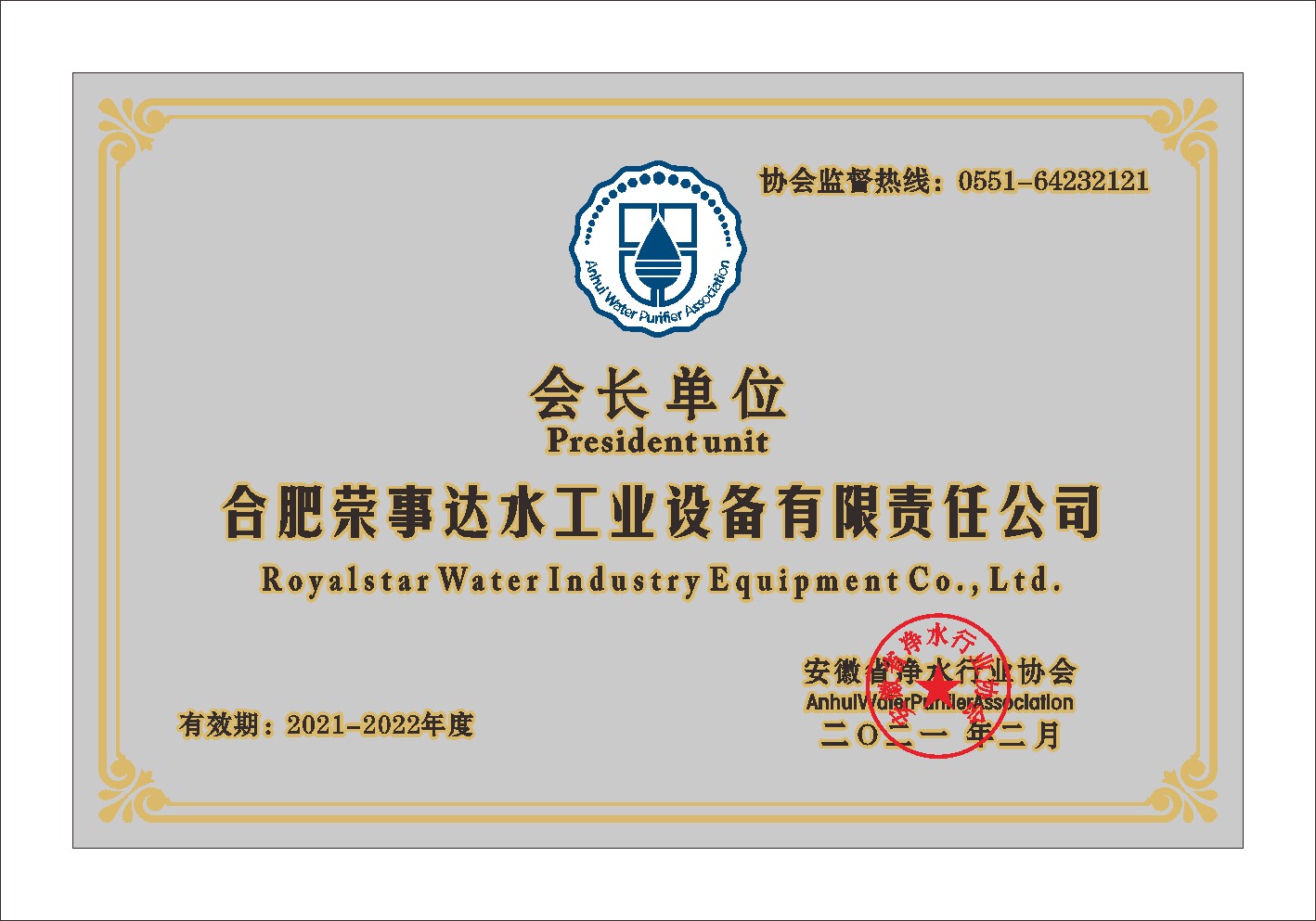 安徽省凈水行業(yè)協(xié)會會長單位... -