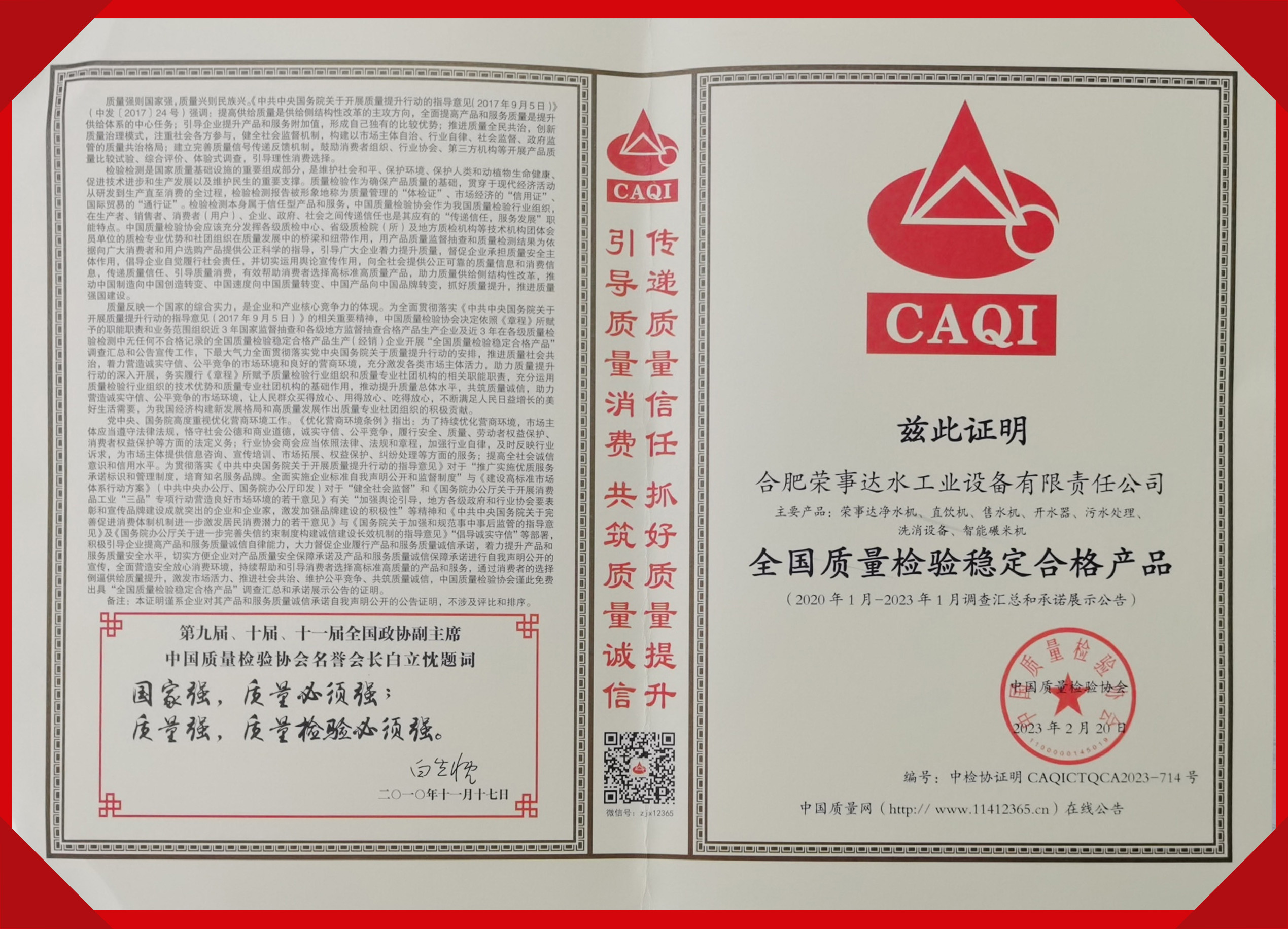 全國質(zhì)量檢驗穩(wěn)定合格產(chǎn)品 -