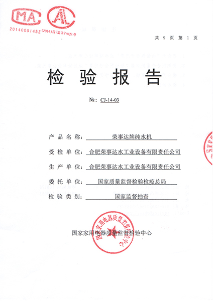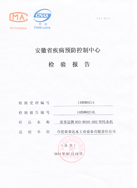 RSD-RO50-A02型純水機(jī)檢驗(yàn)報... -