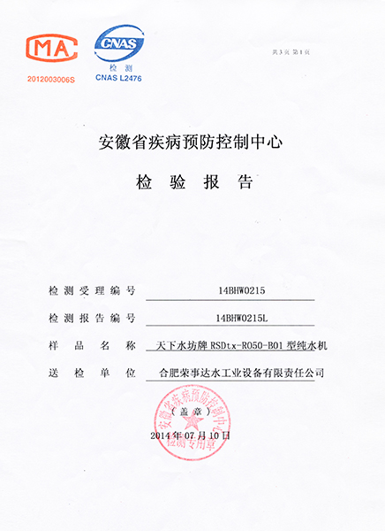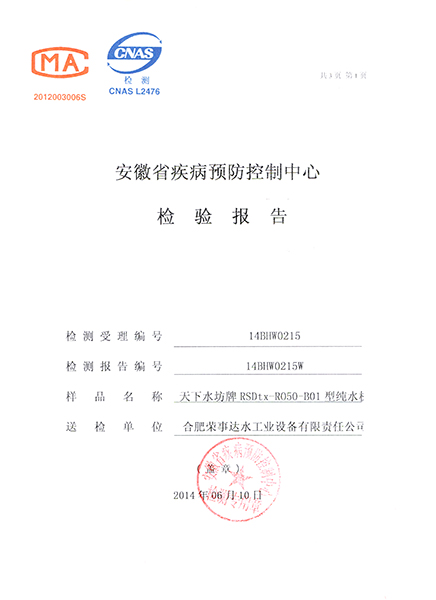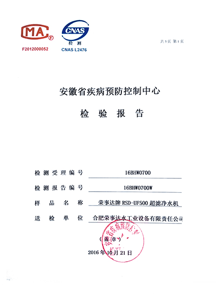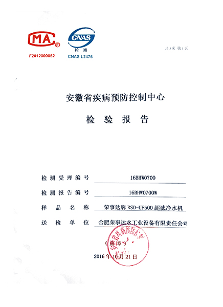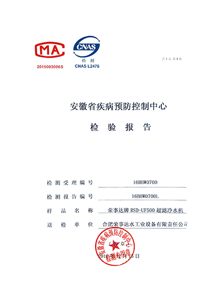 RSD-UF500超濾凈水機(jī)檢驗(yàn)報告... -