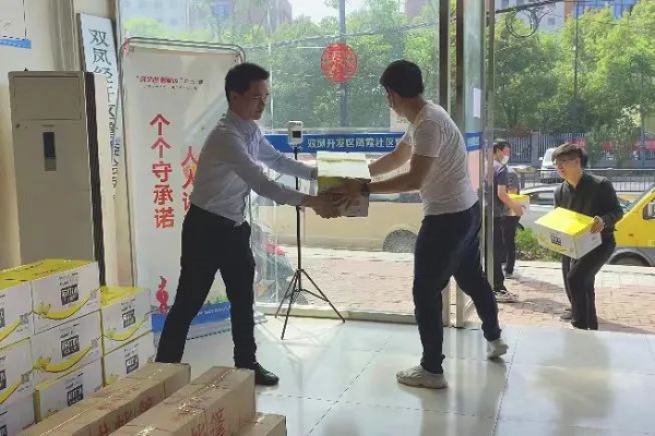 4月26日,榮事達水工業集團第四批支援防疫物資抵達長豐(雙鳳)經開區鳳霞社區黨群服務中心