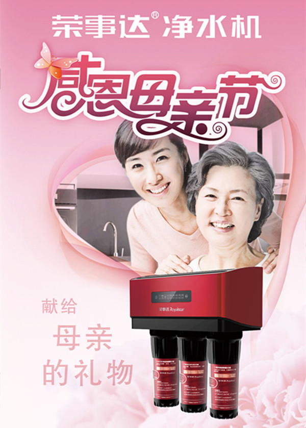 時光流逝,歲月催老,家人的健康是每個子女的心愿。這個母親節(jié),為親愛的媽媽送上一臺優(yōu)質(zhì)貼心的凈水機(jī)吧,在傳遞濃濃情意的同時,為她們締造理想、舒心的飲用水生活!